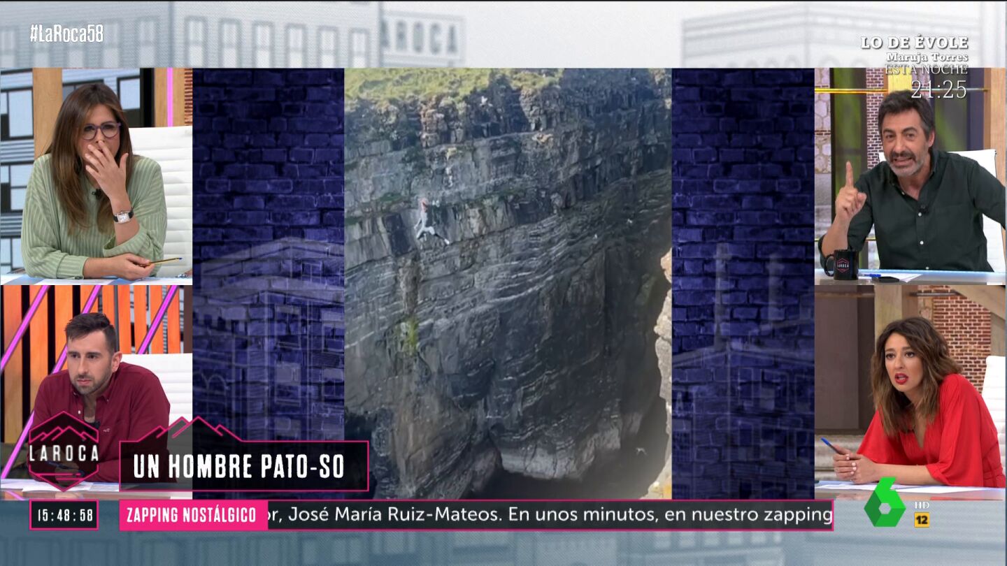 Mientras estaba cayendo, un pájaro se interpuso en su trayectoria, lo que hizo que inevitablemente ambos acabasen chocando. "Vamos a pensar en el número de posibilidades que hay de que tirándose por ahí mate a un pájaro", ha indicado Juan del Val mostrando su asombro por la casualidad de que eso hubiese podido suceder.