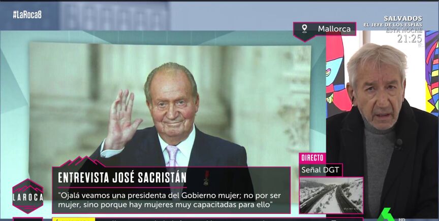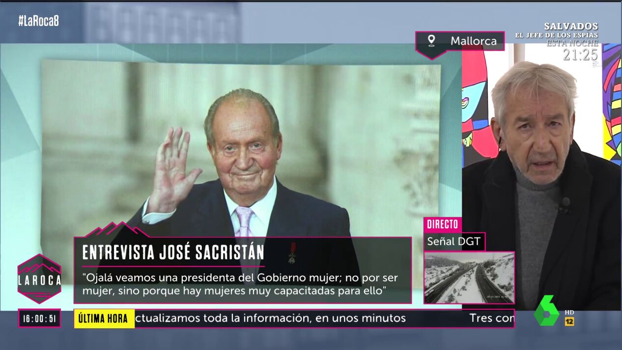 Eso sí, opina que de venir a España "le va a joder las Navidades al rey", a un Felipe VI que Sacristán considera "un hombre respetable y muy a tener en cuenta". Además, sobre la actitud de Juan Carlos I y las cosas por las que ha sido investigado, Sacristán apunta: "Ni siquiera tiene la grandeza trágica, sino que es un lío de pesetas y de faldas. Una cosa cutre y esperpéntica".