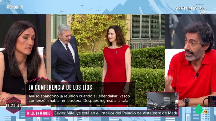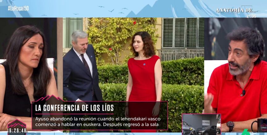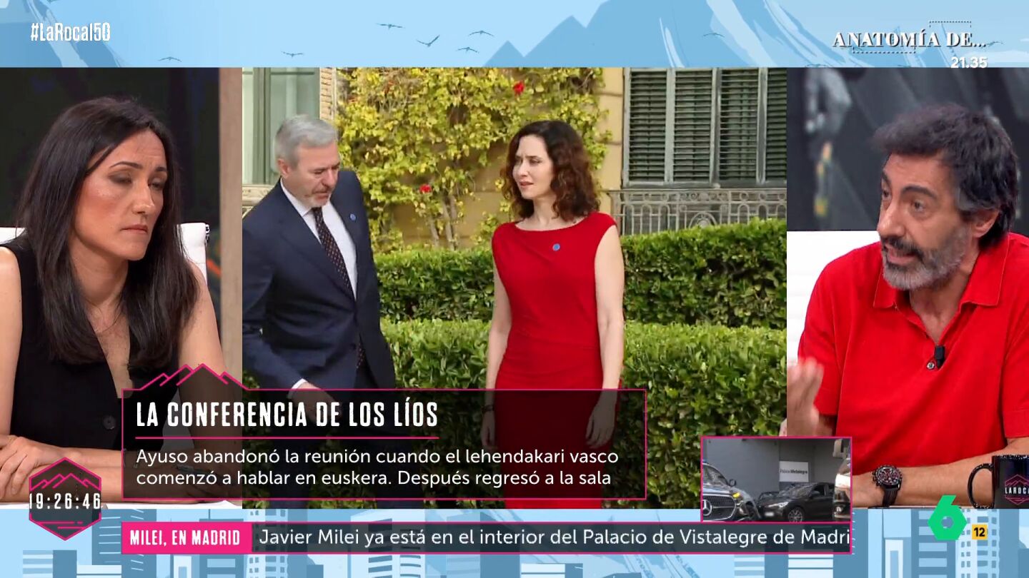 Juan del Val ha criticado duramente la actitud de Isabel Díaz Ayuso durante la Conferencia de Presidentes. El colaborador de La Roca considera que su comportamiento responde a un afán de protagonismo y califica sus gestos como "política rastrera".