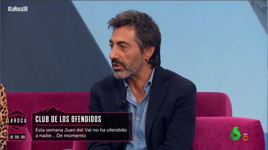 Nuria Roca explica en el plató de La Roca que esta vez no puede hacer 'El club de los ofendidos' porque "esta semana en El Hormiguero" Juan del Val no dio titulares polémicos. ¿El motivo? "No tuve tiempo para nada, Pablo no me dio tiempo porque estaba la tertulia con Tamara que estaba contando lo que le pasó", explica Juan del Val.