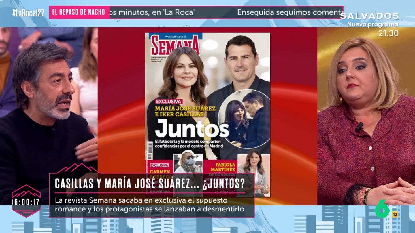 El enfado del colaborador se produce tras ver la portada de la revista Semana, donde se insinúa que el exjugador de fútbol Iker Casillas y María José Suárez podrían estar iniciando una relación amorosa.