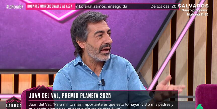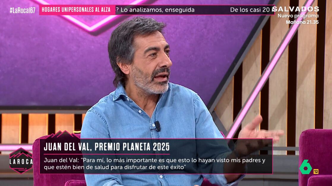 En este vídeo de La Roca, Juan del Val ha hablado con total sinceridad sobre las críticas que ha recibido tras ganar el Premio Planeta 2025 por su novela 'Vera, una historia de amor'. "Hay una base de lectores que me sigue por lo que escribo", comenta.