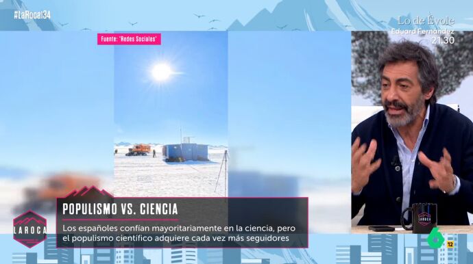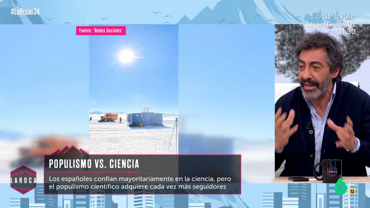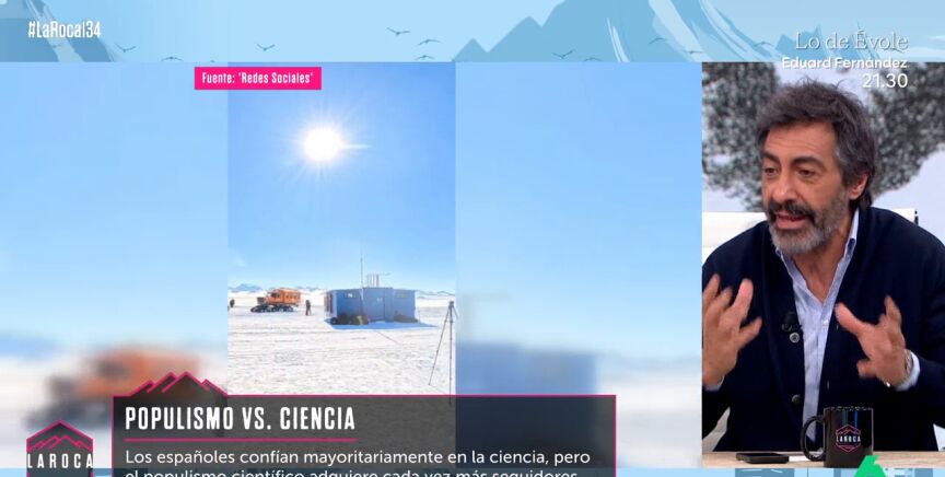 Según una encuesta, los españoles confían mayoritariamente en la ciencia. No obstante, el populismo científico va ganando cada vez más seguidores. Desde el plató de La Roca, Juan del Val da a conocer su opinión sobre aquellos que creen en teorías conspiranoicas como el terraplanismo.