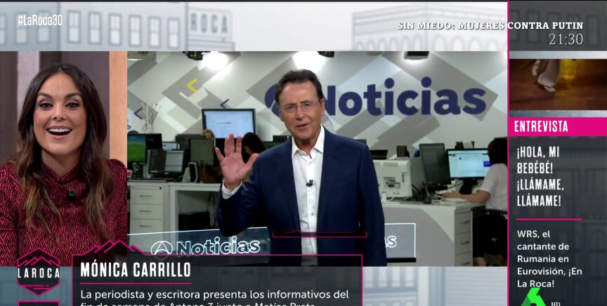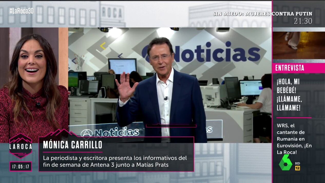 Berni Barrachina dado paso en La Roca a algunos de los chistes malos que Matías Prats ha dado en diferentes informativos, y ha pedido prestar especial atención a las caras de Mónica Carillo al escuchar a su compañero en Antena 3 Noticias. "Nos entendemos muy bien y el público nos ha aceptado muy bien", ha expresado la periodista tras ver las imágenes.