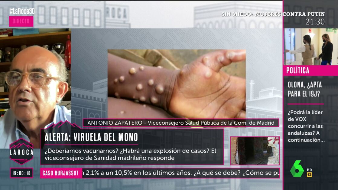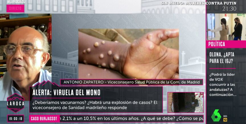 Antonio Zapatero, viceconsejero de Salud Pública de la Comunidad de Madrid, ha hablado en La Roca acerca de los casos detectados de la viruela del mono en la Comunidad de Madrid. Hasta ahora, se han confirmado 30 casos y se estudian otros 40 sospechosos.