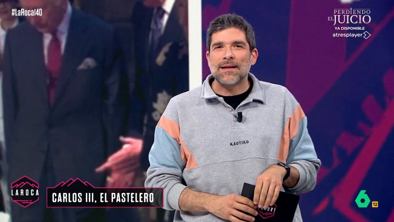 El humorista, en La Roca, ha analizado la curiosa forma que tiene el rey Carlos III para cortar tartas: "Le tienen que ayudar a apretar con el cuchillo". Todos los detalles en el vídeo principal de esta noticia.
