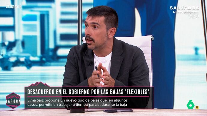 Desde La Roca, Ramón Espinar califica la propuesta de Saiz como una "bazofia". "Las bajas en este país las dan los médicos, no te las coges tú", señala tajante el colaborador de laSexta. "Si el criterio de un médico es que tienes que estar de baja, no entiendo el debate", añade Espinar.