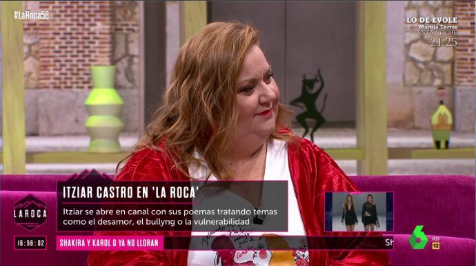 La actriz Itziar Castro acudió al plató de La Roca el pasado mes de febrero para ser entrevistada por Nuria Roca. Durante la entrevista, Castro habló sobre cómo afrontaba los insultos que recibía: "Cuando a mí me han insultado y me han llamado gorda, dices, vale, ¿y ahora qué?", expresó, al tiempo que defendió que "las palabras tienen el poder que nosotros les queramos dar, y las tenemos que relativizar". "En el momento en el que alguien te insulta con una palabra y tú le desarmas, se ha acabado el juego", manifestó.