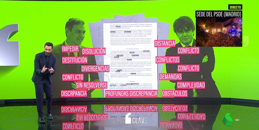 Un ejemplo es cómo cuentan el 1 octubre. Junts, por su parte, "considera legítimo el resultado y el mandato del referéndum del 1 de octubre y la declaración de independencia". Pero, el PSOE niega toda "legalidad y validez del referéndum y la declaración y mantiene su rechazo a la unilateralidad".
