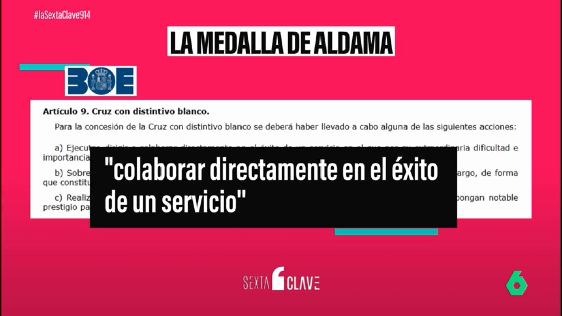 Aunque esta distinción se concede generalmente por sobresalir en el cumplimiento de los deberes o por colaborar directamente en servicios difíciles, en el caso de Aldama, según la información de laSexta, la medalla se le otorgó debido a su labor como fuente de información. La Guardia Civil resaltó su capacidad para obtener datos valiosos, algo que, aunque en principio parece sencillo, a menudo no puede ser realizado por el cuerpo mismo.