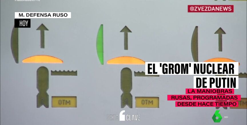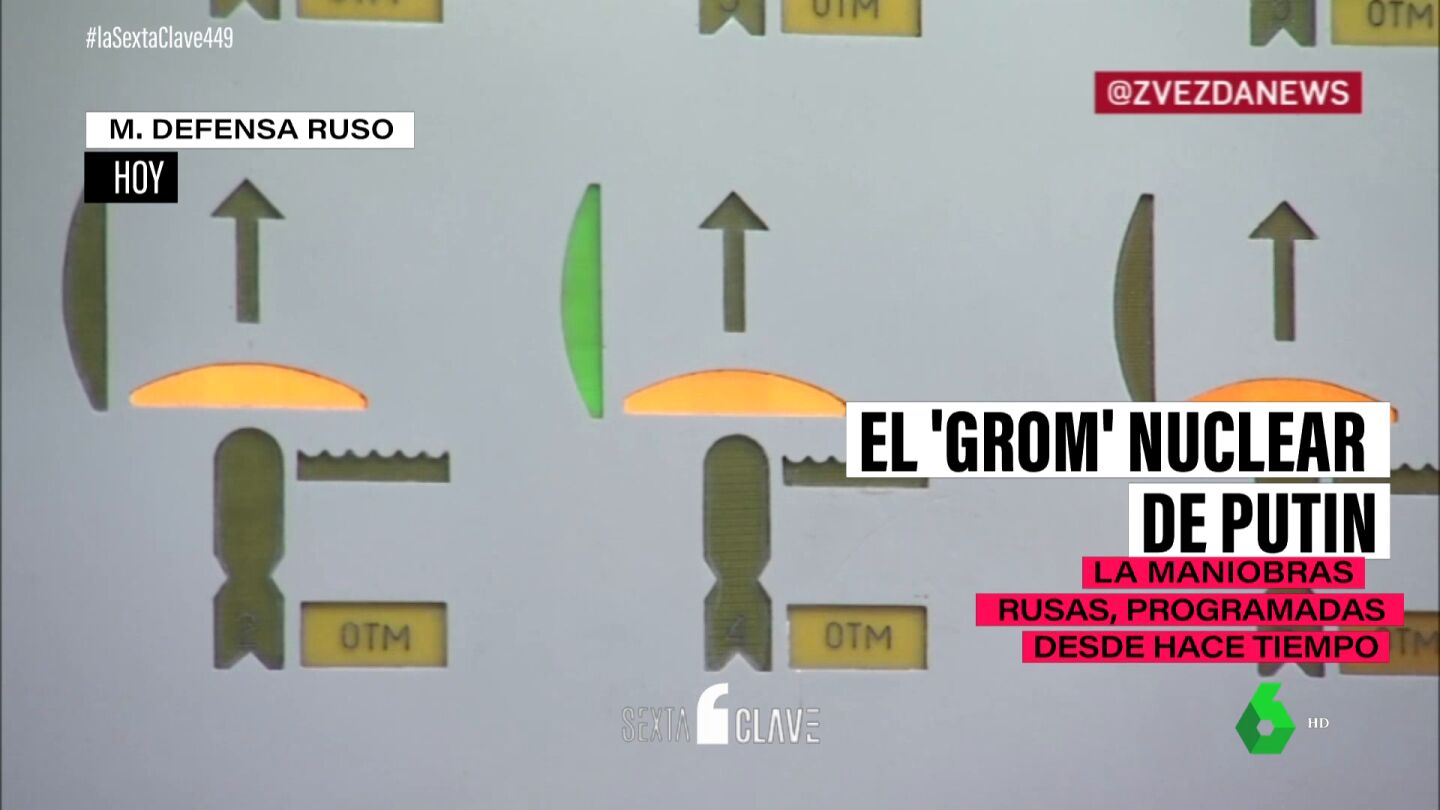 'Grom' ('trueno' en ruso) es el nombre que se ha dado a esta maniobra. En el vídeo que acompaña a estas líneas, vemos a un oficial levantando una tapa y pulsando un botón rojo para lanzar un misil intercontinental. Además, vemos cómo sería el proceso si ese misil se lanzase desde un submarino o desde un bombardero.