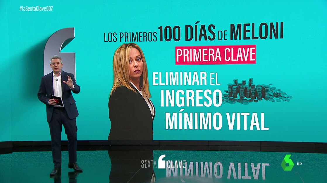 Giorgia Meloni cumple 100 días en el poder de la tercera economía de la zona euro, y laSexta Clave ha querido analizar las seis claves de sus 100 días de mandato. La primera, su asalto contra los pobres: la líder de la ultraderecha italiana prometió eliminar el ingreso mínimo vital, y así lo ha hecho. Por el momento, ha endurecido los requisitos y a partir de 2024 se eliminará.