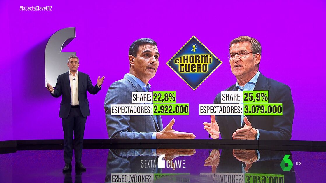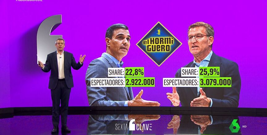 Esta semana la precampaña política ha saltado al prime time, con récord histórico de 'El Hormiguero' gracias a la entrevista a Alberto Núñez Feijóo, que cosechó un 25,9% de share y más de tres millones de espectadores. 157.000 personas más que las que vieron a Pedro Sánchez el día anterior y un 22,8 % de share.
