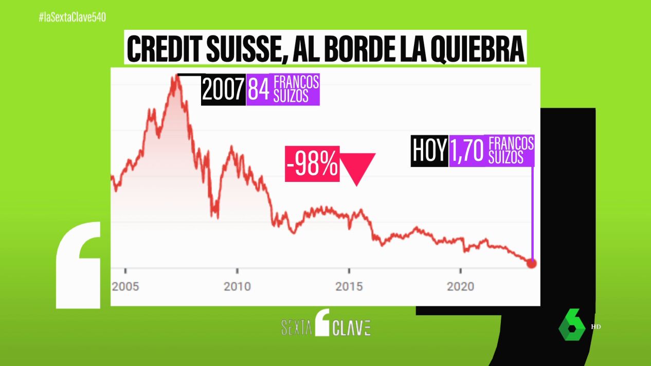 El banco Credit Suisse es uno de los más grandes de Europa y el segundo más grande de Suiza. Este miércoles, ha sufrido unas pérdidas que han llegado a superar el 30%, haciendo temblar al sistema financiero. Aunque pueda parecer que se trata de una situación puntual, lo cierto es que la entidad podría estar más cerca de desaparecer que de salvarse.
