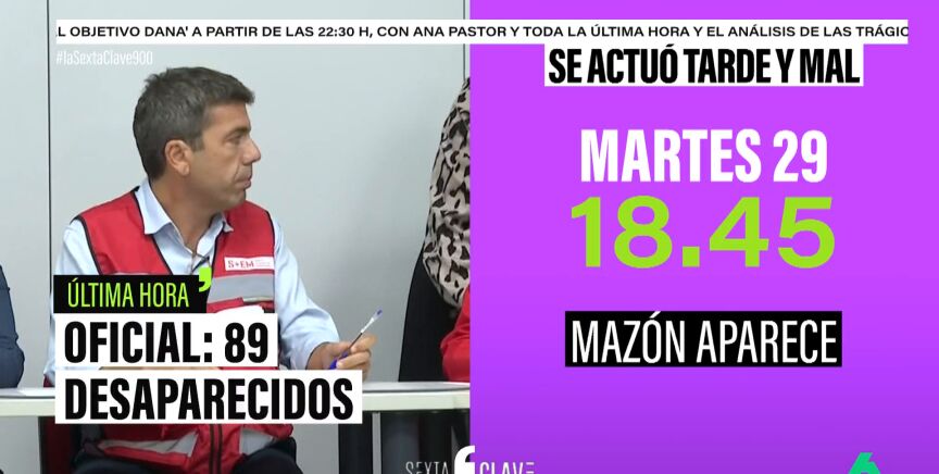 A las 18:45, Carlos Mazón se unió a la reunión, dos horas después de su convocatoria y casi nueve horas después de la primera alerta roja. No fue hasta las 20:11 que Protección Civil envió un aviso a la población. Este aviso no llegó a muchos vecinos, ya que la DANA había bloqueado las comunicaciones.
