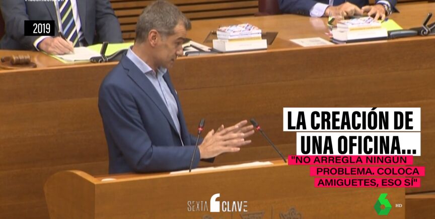 "Nosotros vamos a registrar una ley para evitar el enchufismo. Para que un carne del PP, del PSOE o Podemos deje de ser el mejor currículum para conseguir trabajo", aseveraba en otra intervención, mientras que, también en 2019, concluía el siguiente llamamiento: "Queremos menos políticos para que haya más doctores. Queremos eliminar enchufados para que haya menos niños en los barracones. Y queremos eliminar chiringuitos para acabar con las listas de espera en la sanidad valenciana, porque son insoportables y porque no queremos duplicidad alguna".