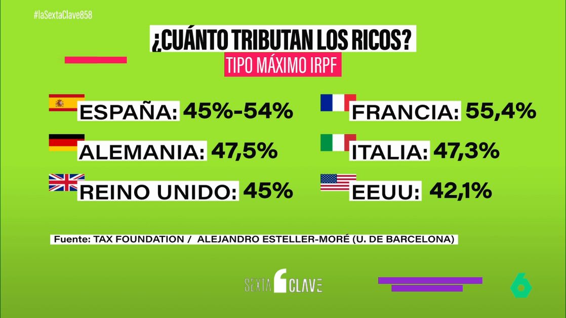Desmontando el mito del impuesto a los ricos: en Francia, Alemania, Italia y Reino Unido pagan igual que en España