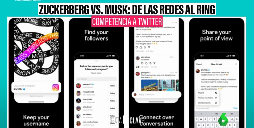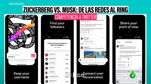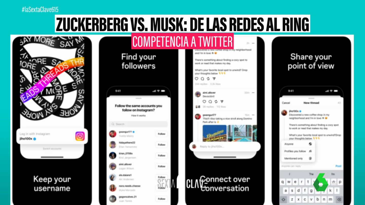 Meta, propietaria de Facebook e Instagram, se enfrenta a Twitter con su próxima red social: Threads. Al mismo tiempo, los magnates de ambas empresas, Zuckerberg y Musk, se preparan físicamente para vencer en un combate cuerpo a cuerpo.