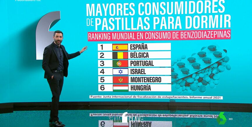 Con ese dato, España se coloca como el país del mundo donde más pastillas para dormir se consumen, por delante de Bélgica, Portugal, Israel, Montenegro y Hungría. Ocho de cada diez españoles consumen estas pastillas por prescripción médica, siendo solo el 3,6% los que aseguran que las han consumido sin receta.