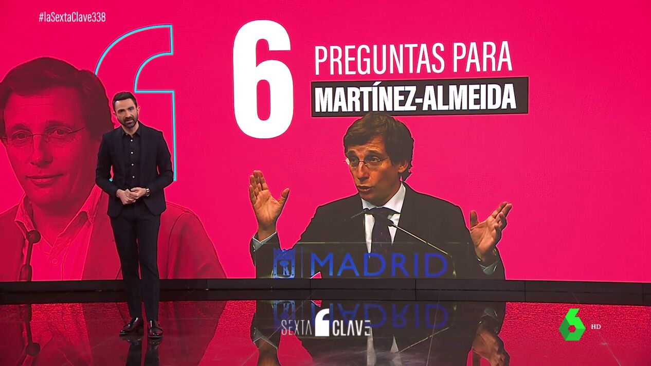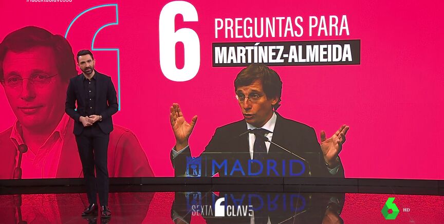 Que en el escándalo de las 'mordidas' millonarias por la venta de material sanitario al Ayuntamiento de Madrid hay dos comisionistas sin escrúpulos no hay duda, pero sí las hay de la gestión del ayuntamiento (de ese que se personará en la causa) y de cómo actuó. Por esta razón, el periodista Joaquín Castellón ha lanzado en laSexta Clave seis preguntas para el alcalde, José Luis Martínez-Almeida. La primera: ¿cómo contactó Luis Medina con el Ayuntamiento? Almeida dijo que fue a través de un email a una "dirección genérica del consistorio" (a una dirección "donde escribían todos los que querían ofrecer sus servicios").