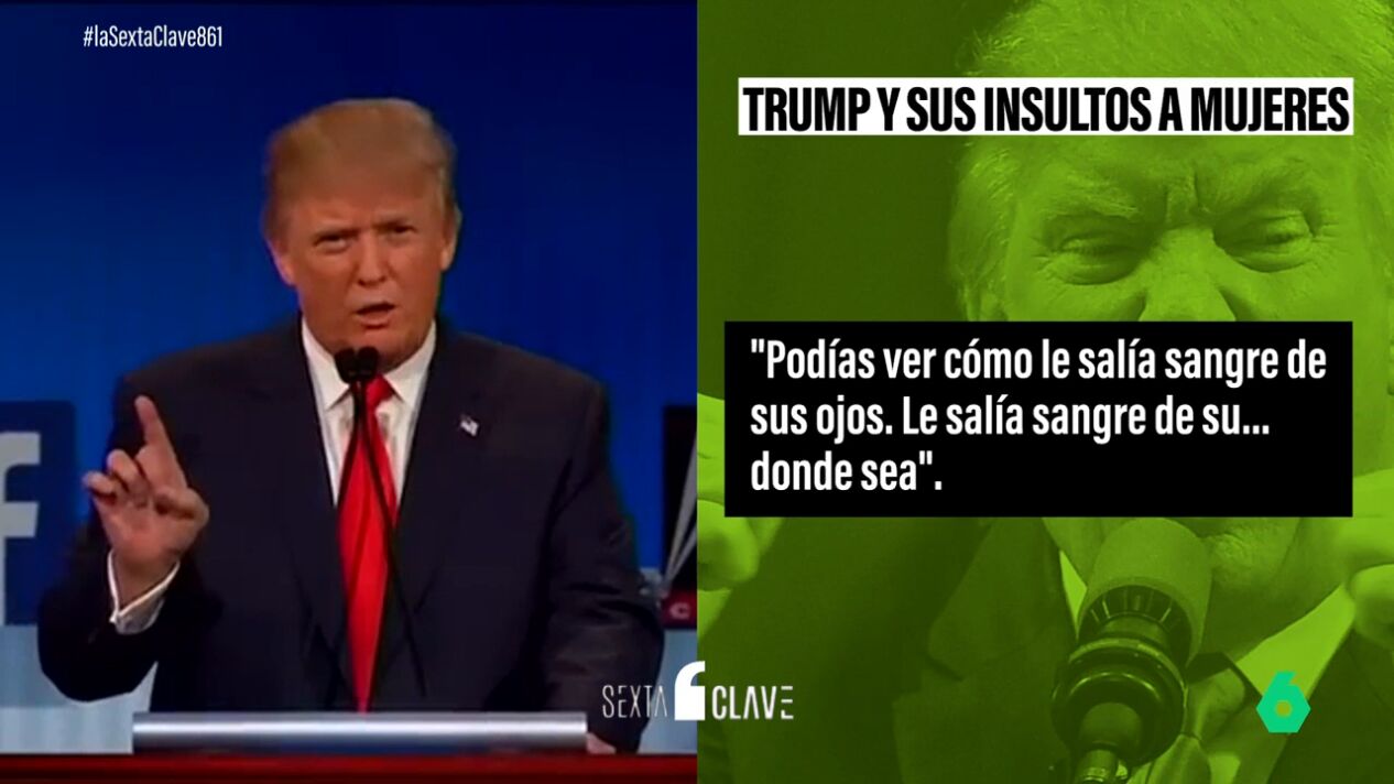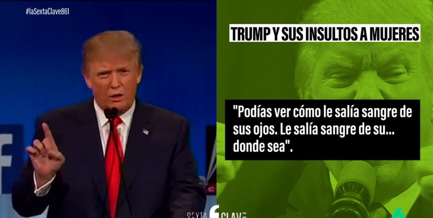 En un debate, Trump fue confrontado por una moderadora sobre sus comentarios sobre mujeres que había llamado "cerdas" y "desaliñadas". En lugar de disculparse, Trump respondió insinuando que la moderadora estaba menstruando, con comentarios despectivos como "podías ver cómo le salía sangre de sus ojos. Le salía sangre de su... Donde sea".