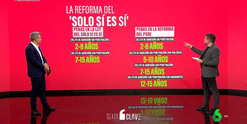 Para resolver todas las cuestiones levantadas a lo largo de la jornada, Alfonso Pérez Medina llega al plató de laSexta Clave y explica qué cambia exactamente con esta reforma. Para empezar, los socialistas han "reproducido" aspectos de la actual ley "dejando el consentimiento como estaba".