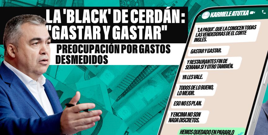 Nada, de nada, de nada. Pero la UCO deja claro que esa empresa recibía un 2% en comisiones de Acciona, y a Cerdán le dieron una tarjeta black para, literalmente, "gastar, gastar, gastar", tal como él y su entorno reconocen en conversaciones intervenidas. Tanto es así que hasta comentaban entre ellos lo descarado de los gastos: Karmele Atutxa escribía sobre Paqui, la mujer de Cerdán: "La conocen todas las vendedoras de El Corte Inglés. Gastar y gastar. Y restaurantes fin de semana sí y otro también. Todos de lo bueno, lo mejor. Eso no es plan". Y Antxon Alonso añadía: "Y encima no son nada discretos".