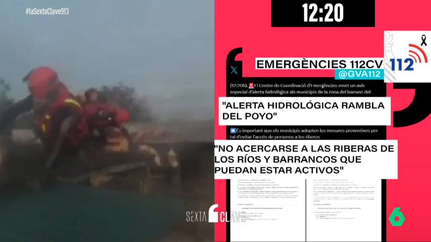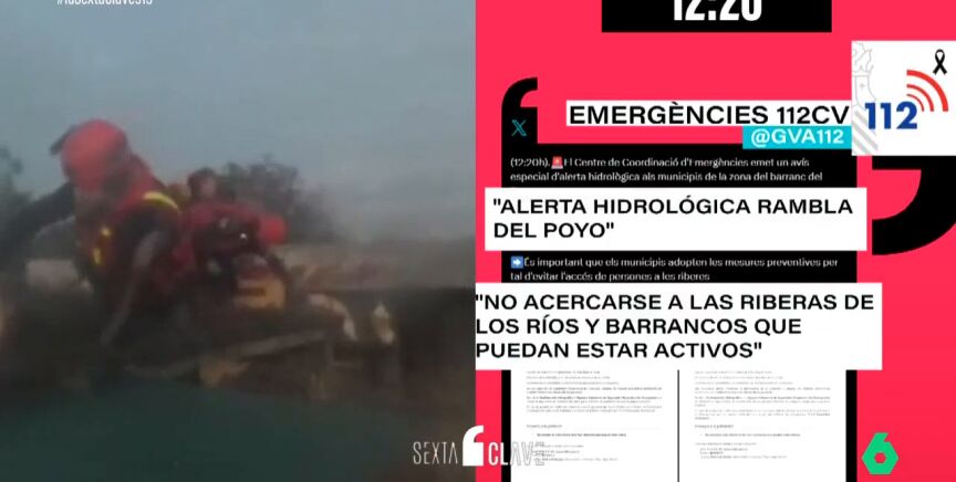 Primero. A las siete de la mañana de ese día llegaron los primeros avisos rojos de la Agencia Estatal de Meteorología (AEMET) a Valencia. Más tarde, a las diez de la mañana, se decretaba la alerta roja en toda provincia. Después, a mediodía, el servicio de Emergencias de la misma Generalitat declaró la alerta hidrológica en la rambla del Poyo.