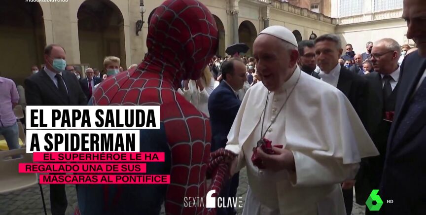 En su encuentro con Francisco, que puede verse en el vídeo que ilustra esta noticia, Spiderman incluso le ha regalado al papa una de sus máscaras.