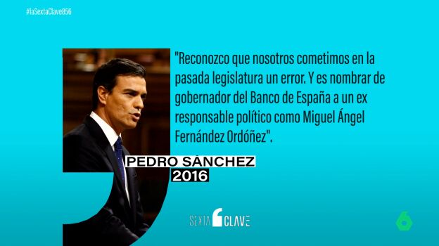 Recién llegado a la secretaría general del partido, Pedro Sánchez ya había admitido en corrillos de periodistas que el nombramiento de MAFO había sido un error, señalando la falta de independencia que resultó en la crisis financiera de 2008. MAFO fue criticado por ignorar las señales de alerta y proteger al presidente que le había nombrado, lo que llevó al desprestigio del BdE. La crítica se había llevado a cabo poco antes, en noviembre de 2014 a escala de partido al publicar el PSOE un tuit en el que defendían acabar con la "colonización" de las instituciones por parte de los partidos, mencionando específicamente el Banco de España, entre otros. Esta autocrítica de Sánchez fue repetida en 2016, en unas declaraciones que recogemos en el vídeo.