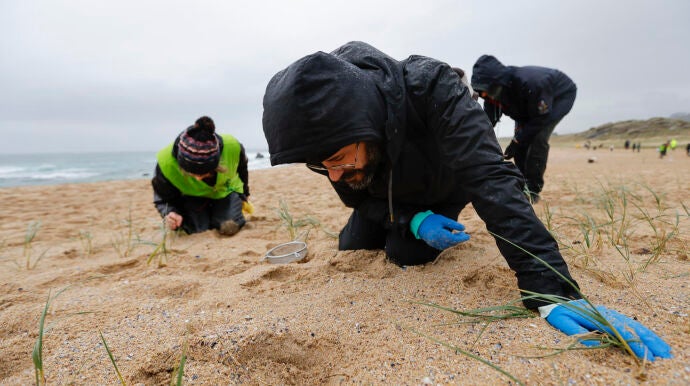 La Xunta de Galicia se salta sus propios protocolos en la recogida de pellets: ni sus operarios llevan guantes