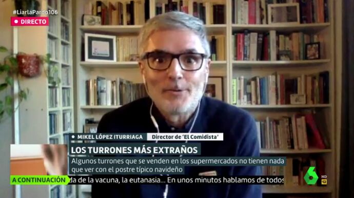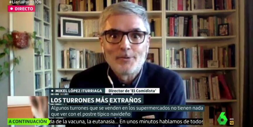 El chef Mikel López Iturriaga habla en Liarla Pardo sobre el mercado de los turrones. Asegura que los más excéntricos, como el de patatas fritas o de gamas al ajillo, igual no son los más solicitados pero sí que pueden funcionar. "Hay un mercado para este tipo de turrones porque la gente está un poco cansada de los de siempre", cuenta.