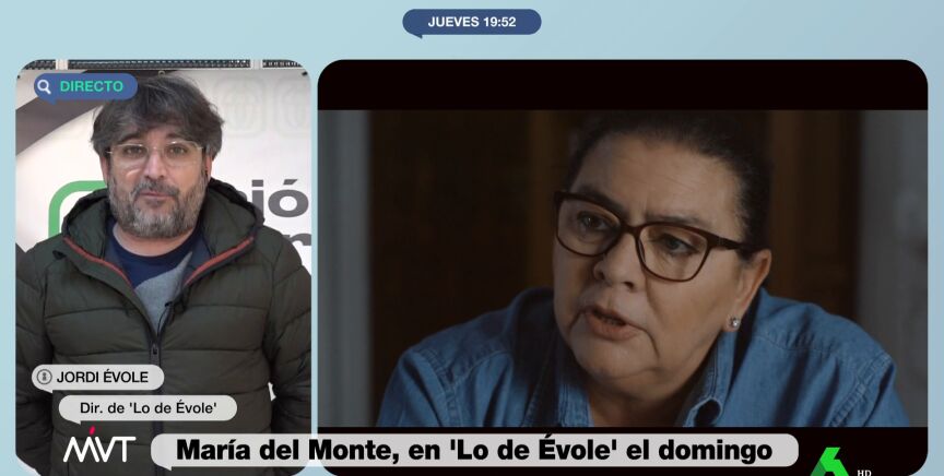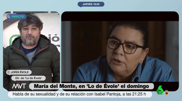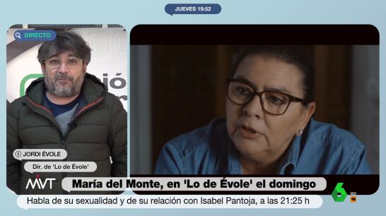La expectación que está generando la entrevista de Jordi Évole a María del Monte, que se emite el próximo domingo en laSexta, ha llegado al plató de Más Vale Tarde. Cristina Pardo, conductora del programa vespertino, contacta en directo con el director de 'Lo de Évole', que desvela algunos detalles de esta interesante charla que mantiene con la artista, a la que, afirma, quería entrevistar desde hacía mucho tiempo.