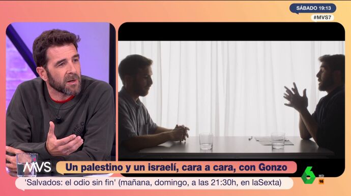 Gonzo sienta en Salvados, frente a frente, a un israelí y a un palestino para charlar sobre el conflicto que mantienen sus países. Un debate que califica de "útil", ya que esto es lo que no hacen sus pueblos "desde el 7 de octubre"