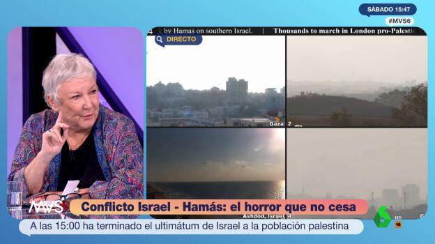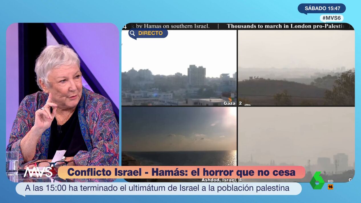 "Esto comenzó con una matanza, un crimen de guerra, la operación de Hamás", recuerda la periodista, quien ha criticado la respuesta de Israel porque, a su juicio, está "anunciando una estrategia de exterminio". "Se está preparando una operación que consiste en aplastar a la población de Gaza, y estoy convencida de que el objetivo detrás de esto es anexionarse esa zona", ha lamentado.