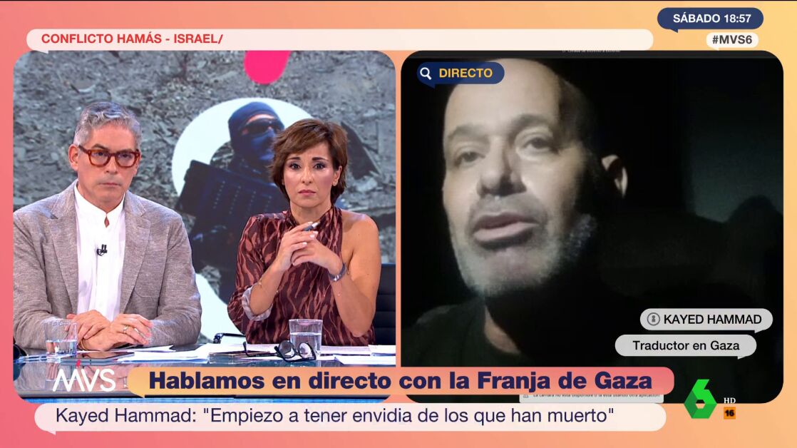 Kayed Hammad, traductor en Gaza, conecta en directo con Más Vale Sábado para contar cómo están llevando las horas posteriores al fin del ultimátum que Israel dio para abandonar el norte de Gaza. "Ahora estamos sin luz, sin agua y sin nada. No sabemos cuándo moriremos. Puede ser en un segundo", muestra su miedo en esta conexión, donde asegura que están esperando su destino. "Morir o vivir es cuestión de suerte", asegura.