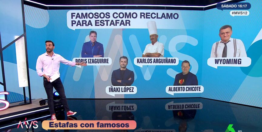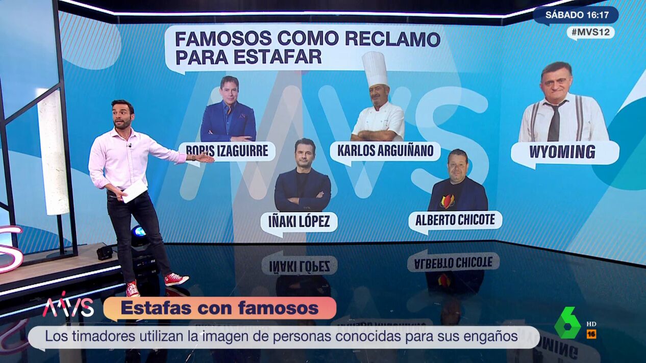 La imagen de los presentadores Iñaki López, Boris Izaguirre o del cocinero Alberto Chicote son algunos de los reclamos usados por los timadores para perpetrar la conocida como 'estafa del famoso'. El periodista de laSexta José Luis Torá ha explicado en el programa Más Vale Sábado en qué consiste.