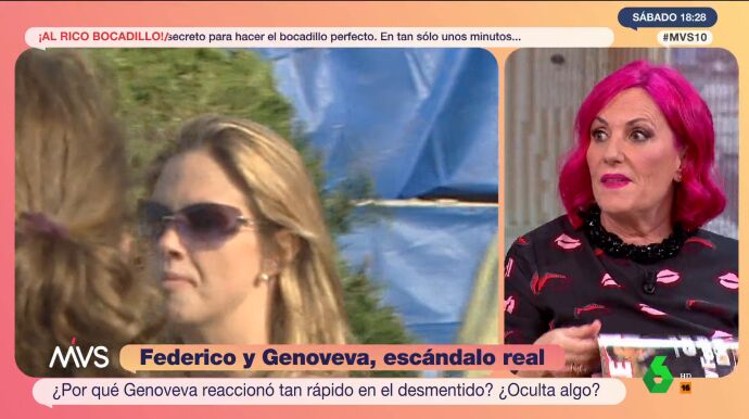 "Eso no se lo cree nadie", reacciona María Eugenia Yagüe. Una afirmación que apoya Karmele Izaguirre: "¡Es muy absurdo! Me da hasta ternura". "Y eso que Genoveva Casanova sabía de antemano que estas fotos existían", informa Alberto Guzmán a sus compañeros, a lo que la redactora jefe de Lecturas responde: "Pues más a mi favor me lo pones para que se invente una excusa mejor".