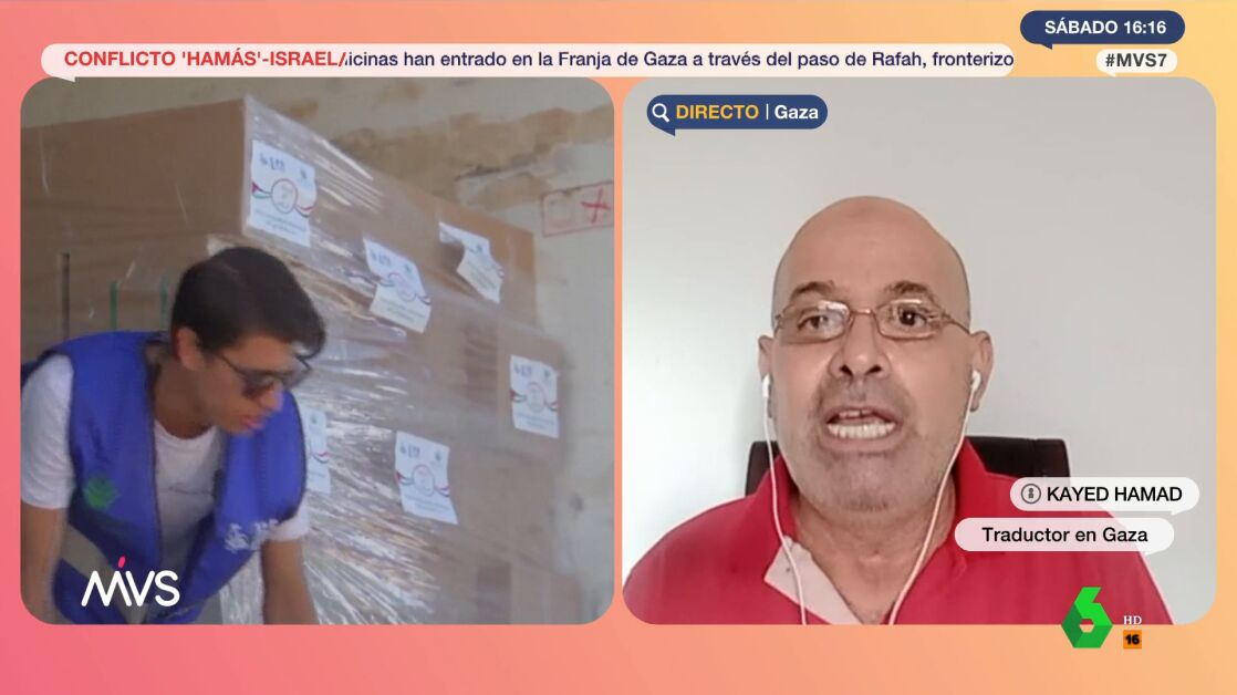 El productor y traductor,Kayed Hamad, conecta con Más Vale Sábado para hablar de cómo están viviendo los gazatíes la llegada de 20 camiones de ayuda humanitaria: "Esto se reparte entre la gente que trabajan en el terminal, no alcanza". Y denuncia que "todo es teatro" porque "no sirve", ya que no es suficiente para la población.
