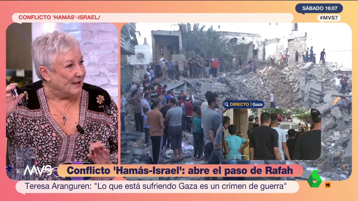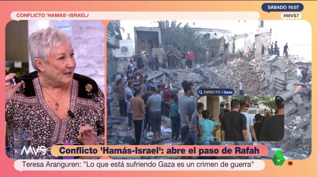 "Lo que padece la población de Gaza es un asedio medieval por hambre y bombardeos", critica Teresa Aranguren durante su intervención en Más Vale Sábado, donde asegura que a esto se le llama: "Crímenes de guerra".