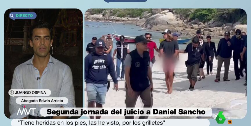 Juango Ospina admite que es "muy duro" ver a Daniel Sancho engrilletado durante el juicio que se está celebrando en Tailandia, trasladando que apoyarían que le fuesen retiradas en caso de que la defensa así lo solicita.