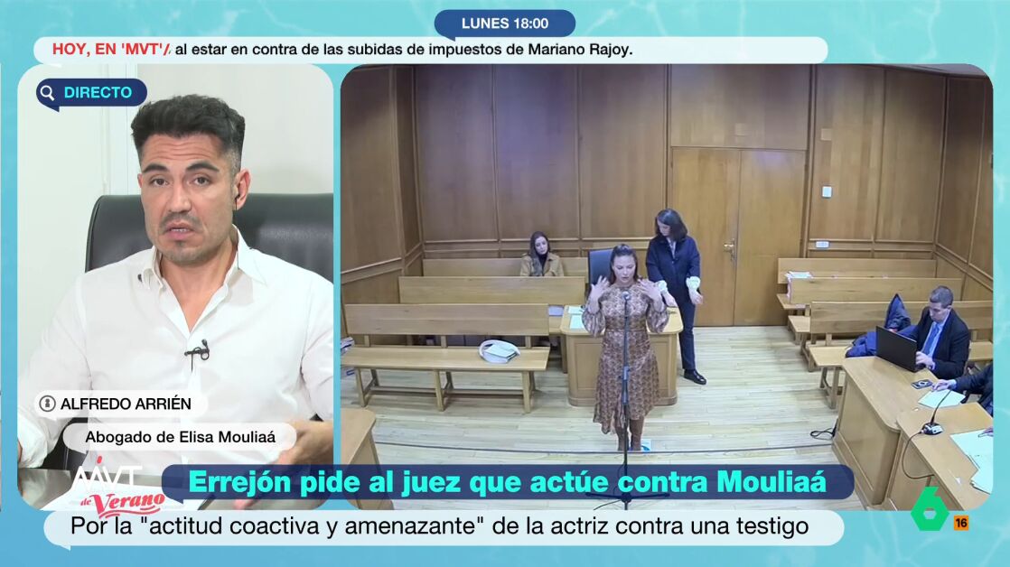 La defensa de Íñigo Errejón ha solicitado al juez que actúe contra Elisa Mouliáa por considerar su actitud con una testigo "coactiva y amenazante". Más Vale Tarde lo analiza con Alfredo Arrién, abogado de la actriz, que apunta que se trata de "algo esperado".