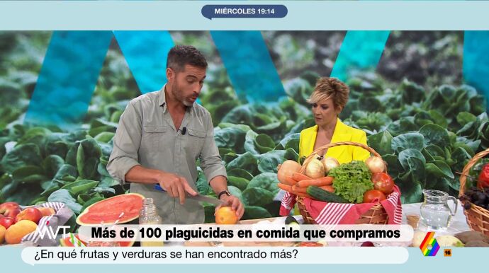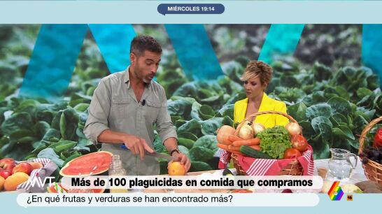 La Agencia Española de Seguridad Alimentaria ha detectado más de 100 plaguicidas en las frutas y verduras que consumimos en España y que no desaparecen con el agua. Un hecho sobre el que ha advertido Pablo Ojeda en Más Vale Tarde: "Actualmente la seguridad alimentaria que hay en España es severa, recta y disciplinada, pero es cierto que el pimiento rojo, las uvas o las naranjas...".