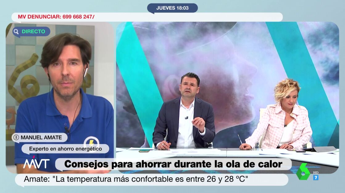 El experto en ahorro energético Manuel Amate ha explicado qué tenemos que hacer en casa para que el aire acondicionado sea más eficiente y más barato. Lo primero, ha explicado, es limpiar los filtros. "Así la máquina no sufre tanto". Después, ha explicado, la temperatura ideal es entre 26 y 28ºC.