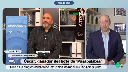 "Creo en la progresividad de los impuestos y espero que se gaste bien. No me duele, me parece justo", ha defendido el flamante ganador de Pasapalabra Óscar López.