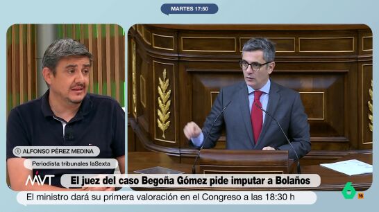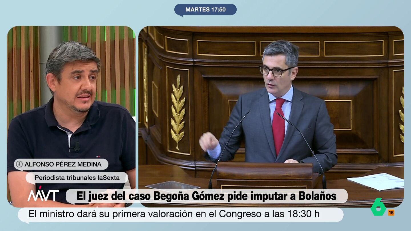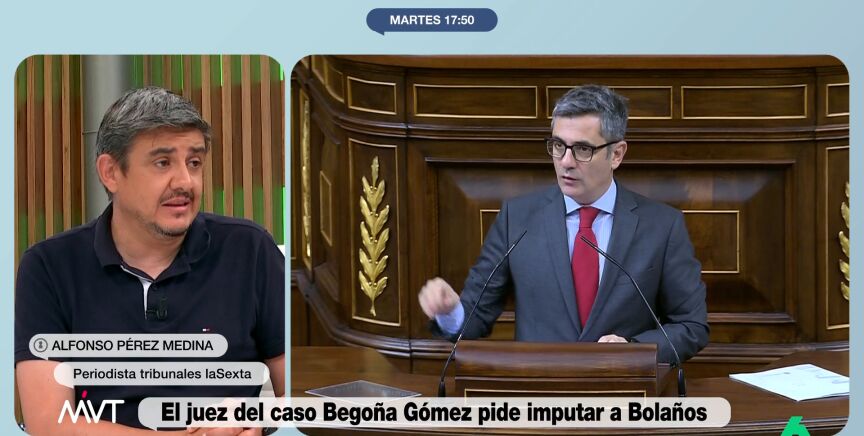 “En sus autos hemos visto muchas cosas exóticas como esta”, ha expresado el periodista de tribunales de laSexta, Alfonso Pérez Medina. Analizando esta petición de imputación sobre el ministro Feliz Bolaños, el periodista considera que "es muy discutible el falso testimonio, porque al final es la palabra de Bolaños contra la palabra del coordinador de personal. Y darle más valor a una que otra, sin más indicios periféricos, es un poco arriesgado".