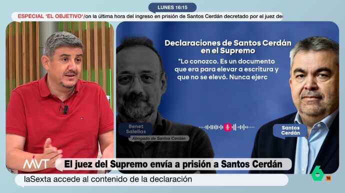 El juez del Tribunal Supremo ha envíado a prisión sin fianza al exsocialista Santos Cerdán. El exmilitante ha declarado este lunes frente al juez para aclarar todas las acusaciones. Cerdán solo ha respondido a las preguntas de su abogado, Benet Salellas, y, entre otras cosas, ha hablado sobre su patrimonio o el famoso contrato con la empresa Servinabar.