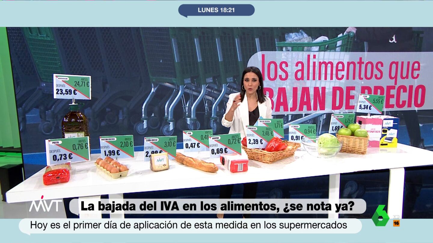 En el vídeo vemos los cambios que podremos ver en productos como el aceite, la leche o la pasta. En una compra de unos 30 euros, tendríamos un ahorro aproximado de 1,5 euros con esta rebaja del IVA.