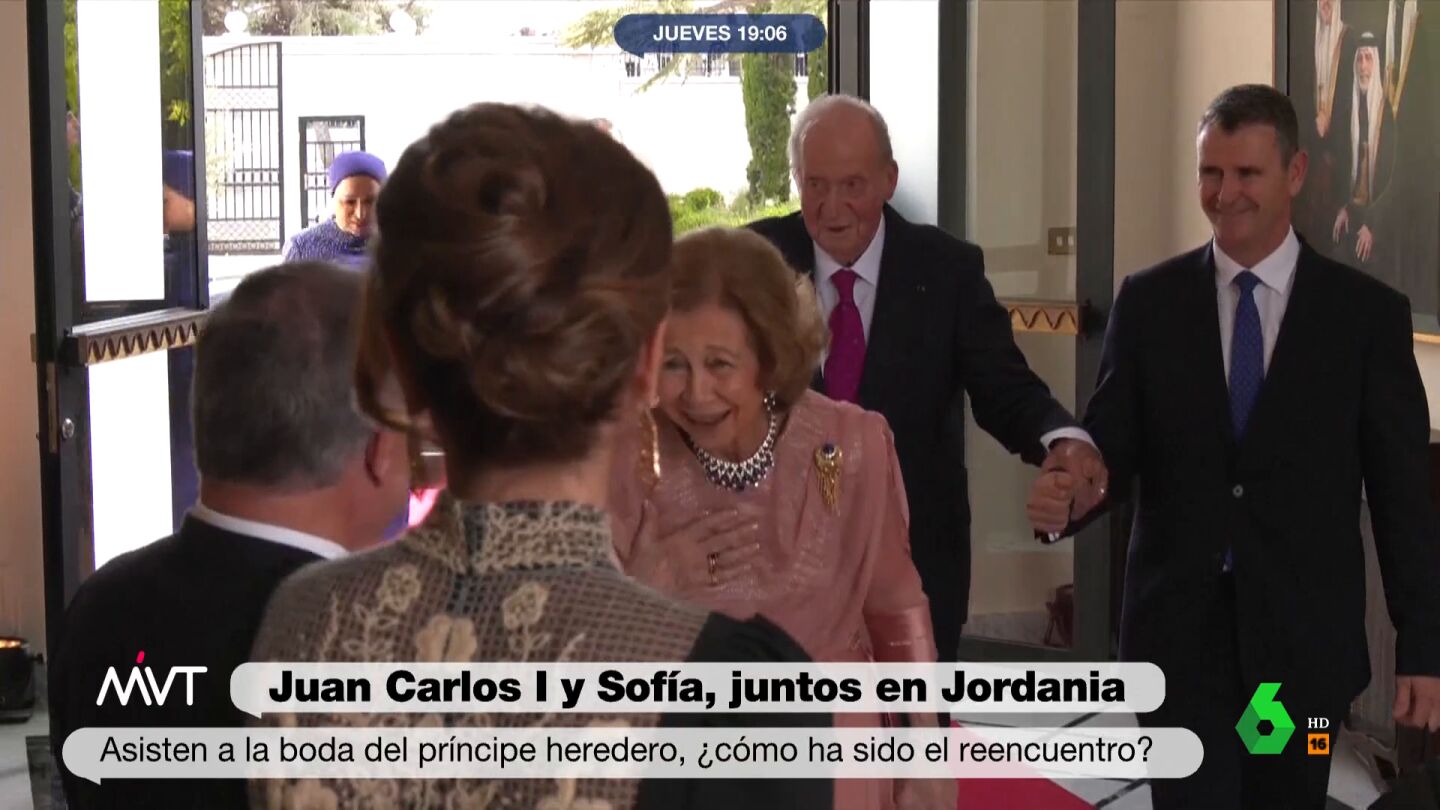 El programa Más Vale Tarde analiza los detalles del reencuentro entre Juan Carlos I y la reina Sofía durante una boda en Jordania. Uno de los momentos más comentados ha sido a la llegada de los eméritos a la ceremonia, momento en que Sofía rompió el protocolo.