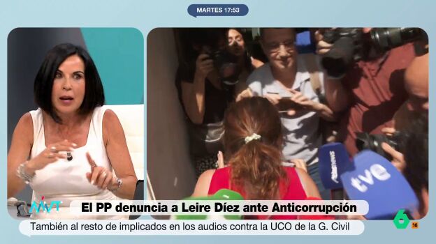 La criminóloga Bea de Vicente ha comentado que en el caso Leire Díez no ve "ni proposición ni inducción" de delito. Así lo ha asegurado De Vicente este martes en Más Vale Tarde tras conocer que el PP ha presentado una denuncia ante la Fiscalía Especial contra la Corrupción y la Criminalidad Organizada contra los militantes del PSOE Leire Díez, el abogado Jacobo Teijelo y el empresario Javier Pérez Dolset.